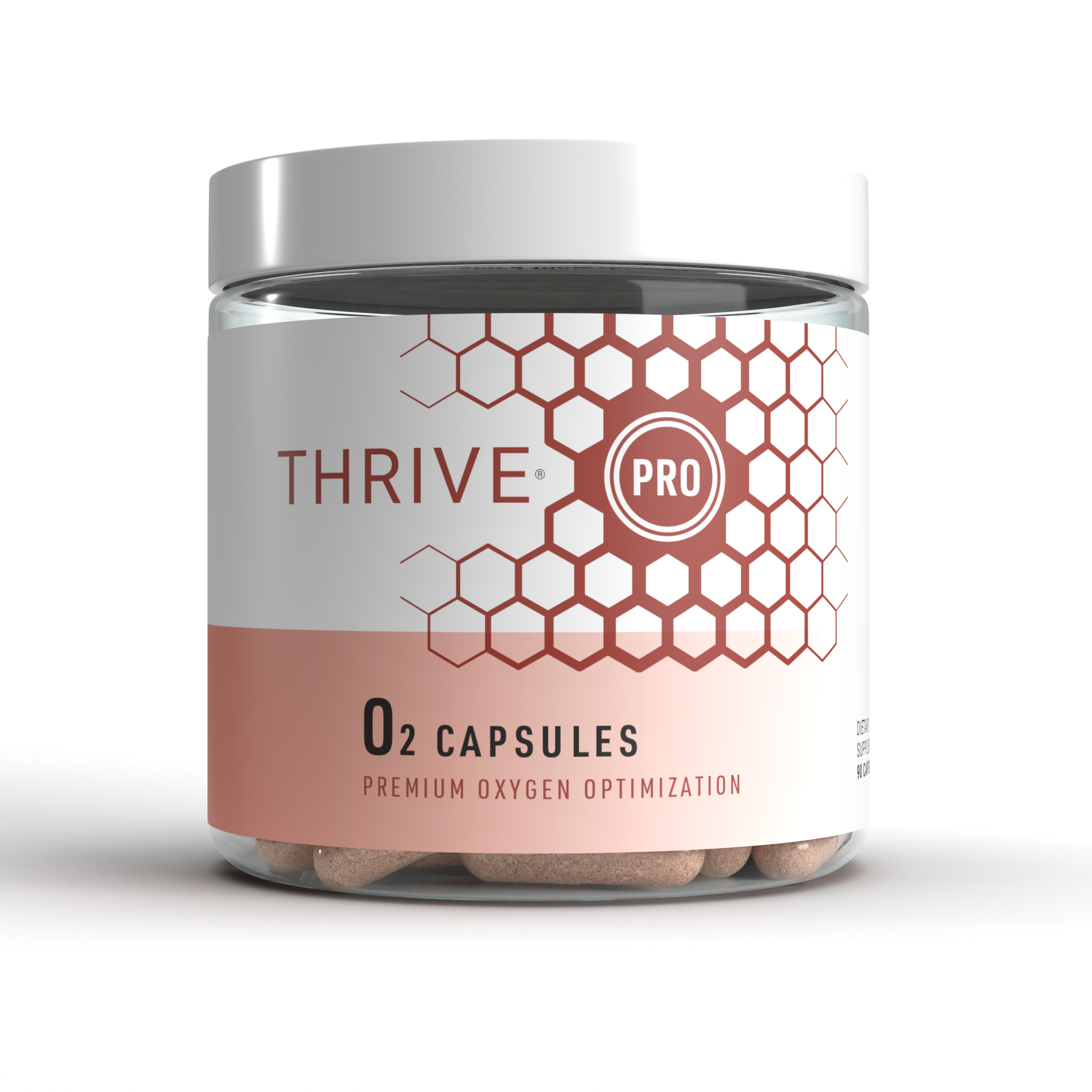 Advance your body’s natural oxygen utilization with THRIVE PRO O2 Capsules formulated to help support your use of oxygen & overall well-being. These oxygen capsules are made with a proprietary blend designed to support your physical performance, heart health and even works to help maintain normal blood pressure.